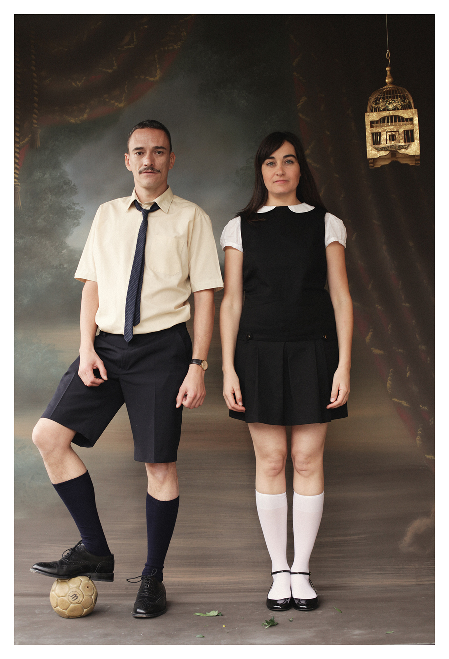 R. No. El hilo conductor lo hacemos nosotros desde nuestro yo personal. Nosotros vamos introduciendo las escenas. «Ahora vais a ver tal personaje que lo podéis ver cada noche en una esquina de la discoteca, oteando…» Vamos narrando los personajes y como por arte de magia, nos convertimos en los personajes que presentamos. Aparte de eso hay alguna fragmento musical. Cantamos, yo toco la guitarra y Edu canta algunas canciones jocosas e hilarantes. Y algunos sketches gestuales. Cercano al absurdo, pero creo que la gente se puede jartar de reir.